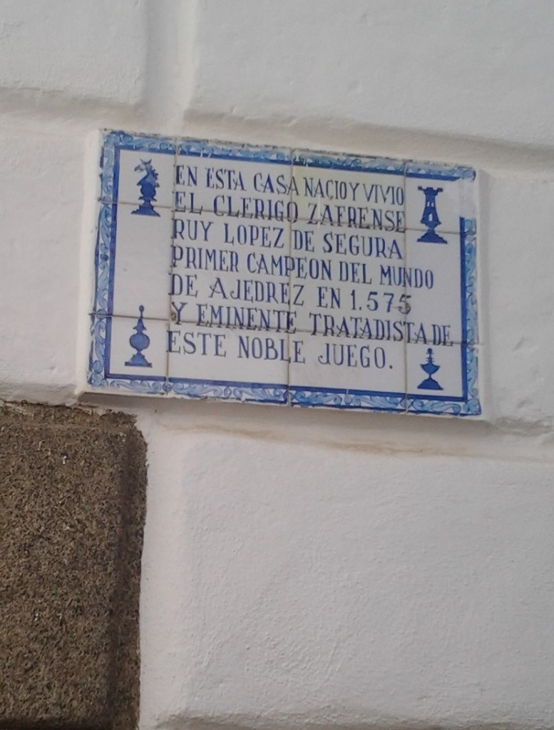 Zafra es una ciudad orgullosa de su paisano y así nos encontramos con la Plazuela de Ruy López. Este, no sólo destacó en su faceta como ajedrecista. También publicó, lo que da imagen de su importancia histórica, la Gramaticæ institutiones en Lisboa en 1563 dedicada al Rey Sebastián de Portugal.