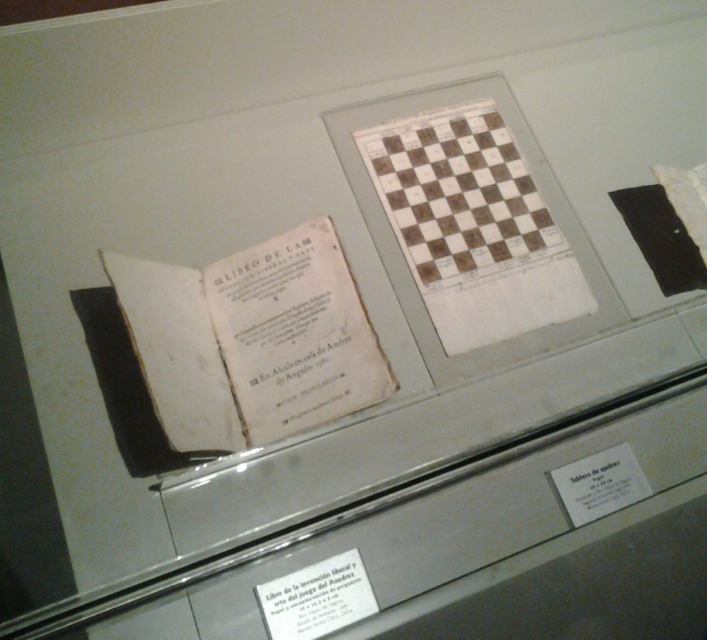 – Aquí se conserva uno de los ejemplares de mi gran obra ajedrecística y un tablero con el que practicaba en mis tiempos mozos.