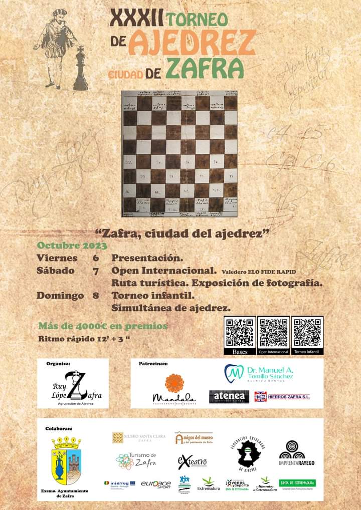Alrededor de este torneo se han celebrado los demás eventos, como homenaje al gran jugador y teórico Ruy López de Segura, y que finalizó el domingo con el Torneo infantil, que tuvo como vencedor al zafrense Raúl Gutiérrez Toro, y una exhibición de partidas simultáneas a cargo de la campeona absoluta extremeña y subcampeona nacional sub18, Pilar Díaz García, del club Ruy López que venció en todas sus partidas. El recorrido ha sido guiado y teatralizado por Exteatro Artes Escénicas.