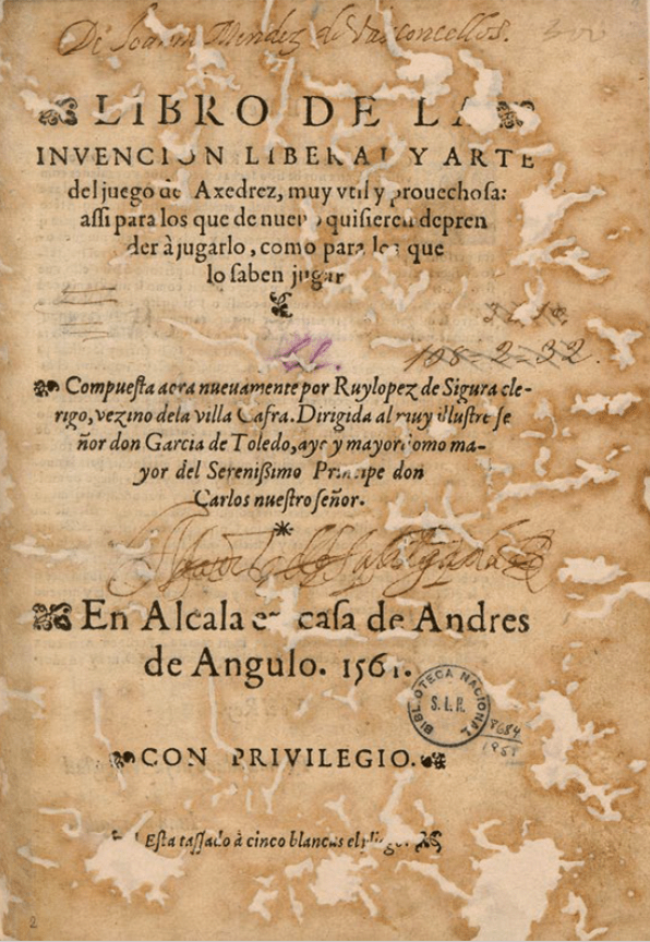 Libro de la invencion liberal y arte del juego de Axedrez… Ruy Lopez de Sigura. Alcalá de Henares 1561. bdlb.bn.gov.br