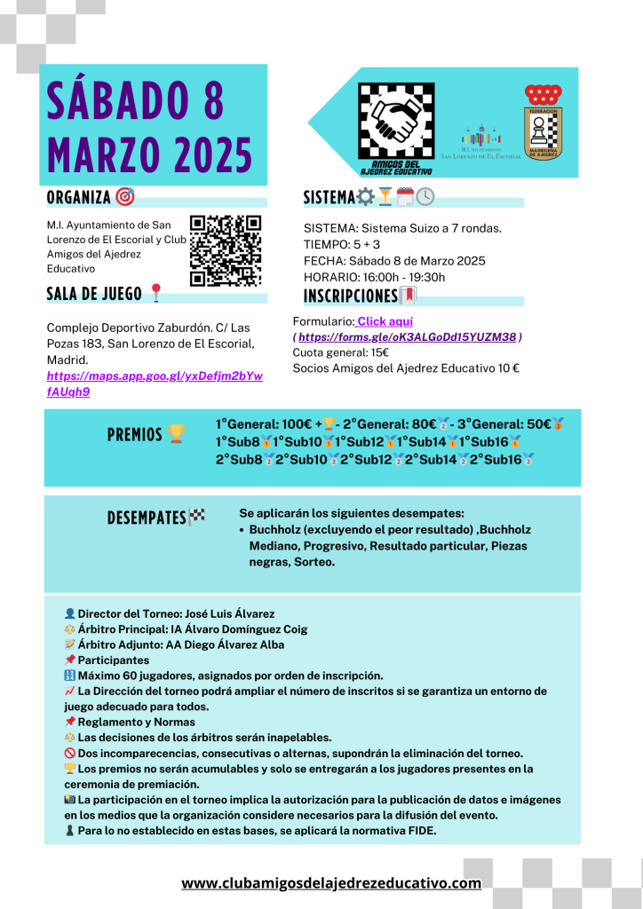 16:00 h Torneo Ajedrez Polideportivo Zaburdón – Sala de Ajedrez – San Lorenzo de El Escorial