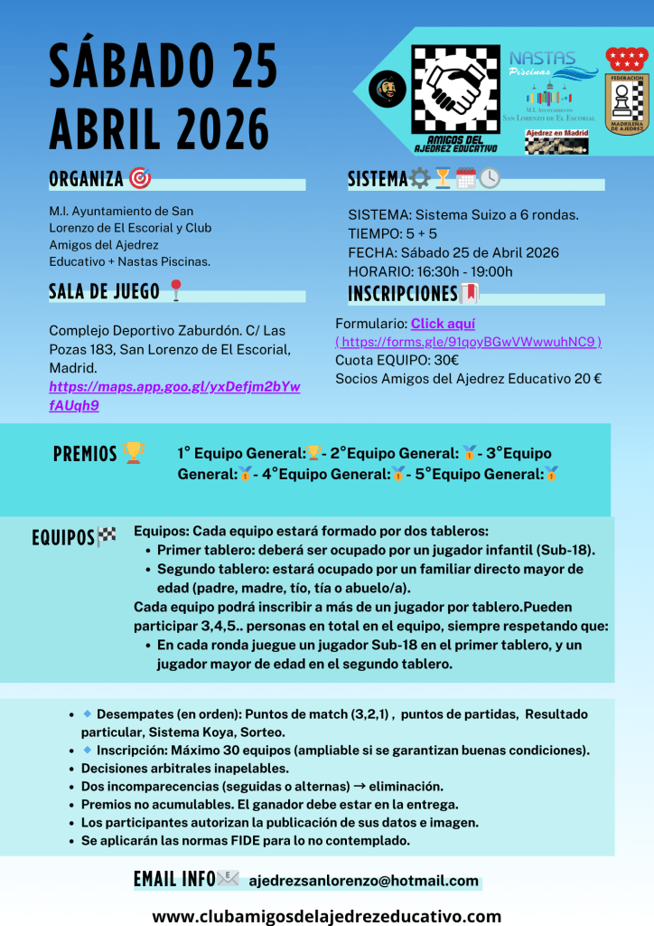 👨👩👦👦IX Torneo Familiar Ajedrez 2026👨👩👦👦